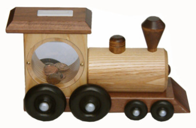Safely protect,store and organize your Child's Money in our Amish handcrafted Train Locomotive Piggy Bank w/ musical tones.